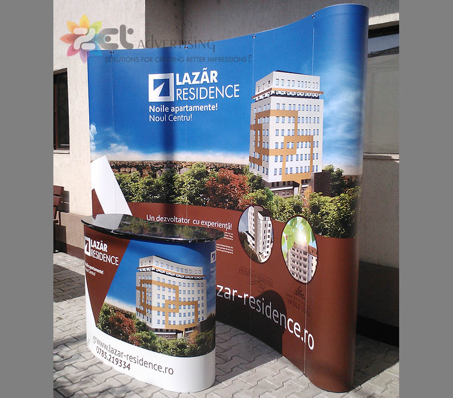Print digital si offsetSisteme expozitionale cu print pe material textil.